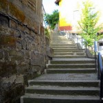 Ca să vedem acest castel (centru cultural în prezent, are în el mai multe muzee) am avut de ales între a lua autobuzul din centrul orașului sau a merge pe jos, pe scări şi drum cotit, din periferie. Am dormit la pensiunea unui italian situată aproape de calea pietonală și am urcat, într-o dimineață călduță, pe scări și un drum în pantă, pe lângă grădini înflorite și case frumoase, însoțiți de cântări păsărești, privind, printre copaci, la panorama orașului. Erau puțini vizitatori la acea oră, răcoare și liniște, iar castelul în sine e un model de arhitectură renascentistă germană.