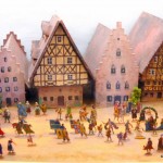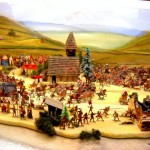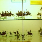 Lumea în mici dimensiuni ne-a însoțit și continuă să facă parte din viața noastră, tematica ei schimbându-se odată cu vremurile. Sunt obiecte care au devenit purtătoare de informații importante. În Rijksmuseum din Amsterdam, casele păpușilor, concepute inițial pentru joacă, devin istorie și evocă viața de zi cu zi din casele olandeze bogate, în secolele trecute. În 1929, un librar și editor, din Potsdam, s-a gândit să atribuie soldățeilor de plumb** un rol foarte serios: acela de a povesti istoria Germaniei. Astfel, s-a născut în orașul german Kulmbach, în castelul Plassenburg, Deutsches Zinnfigurenmuseum, adică unicul muzeu din lume al figurinelor din cositor și plumb. Tematica a depășit ceea ce a propus inițiatorul. În cele peste o sută cincizeci de diorame expuse în vitrine sau nișe se află mulți, mulți și frumoși omuleți: armate călare sau pe jos, din Europa, America, India, Africa, cu uniformele și dispunerea în formațiuni caracteristice fiecărui ținut, cu armele specifice. Noțiunea de conflict evoluează de la eforturile omului primitiv de a se apăra și supraviețui, la confruntările dintre triburi, înfruntările sângeroase ale gladiatorilor din arenele romane, asedii ale orașelor medievale, luptele dintre albi și negri, albi și amerindieni, creștini și musulmani, până la războaiele mondiale. Sunt tot felul de arme, care de luptă, tunuri, tancuri, dar și mașini, motociclete, trenuri. Sunt reconstituite momente ale unor bătălii renumite, în cadrul desfășurării lor, în văi, pe coline, lângă cetăți, mânăstiri, în timpul războaielor, de treizeci de ani, de șapte ani; par secvențe cinematografice încremenite pentru un moment și nu te-ai mira dacă toată această lume mititică de soldați, căpitani, generali și regi ar prinde viață și s-ar declanşa niște păruieli strașnice. Mi-am amintit de filmul Tom Degețel; în camera lor, jucăriile, ziua, o făceau pe moartele, iar noaptea, ura! ce petrecere! Așa și aici, am avut sentimentul că omuleții stau cuminți numai de dragul vizitatorilor iar noaptea își fac de cap. Căci, petrecerile nu lipsesc! Frederic cel Mare cântă la flaut, Charlemagne primește delegați, lumea bună se întâlnește în saloanele pariziene, vânează prin păduri, ia prânzul pe iarbă, participă la carnavalul de la Veneția, se plimbă prin grădini baroce. Mari personalități, papi, regi, Martin Luther, vizitează orașe, nibelungii își povestesc legenda, pirații atacă pe oceane, Attila îi primește pe burgunzi, etc. Impresionanta dioramă care înfățișează cucerirea Kulmbachului, 26 noiembrie 1553, 19 500 morți, a intrat în Cartea Recordurilor ca fiind cea mai mare din lume.