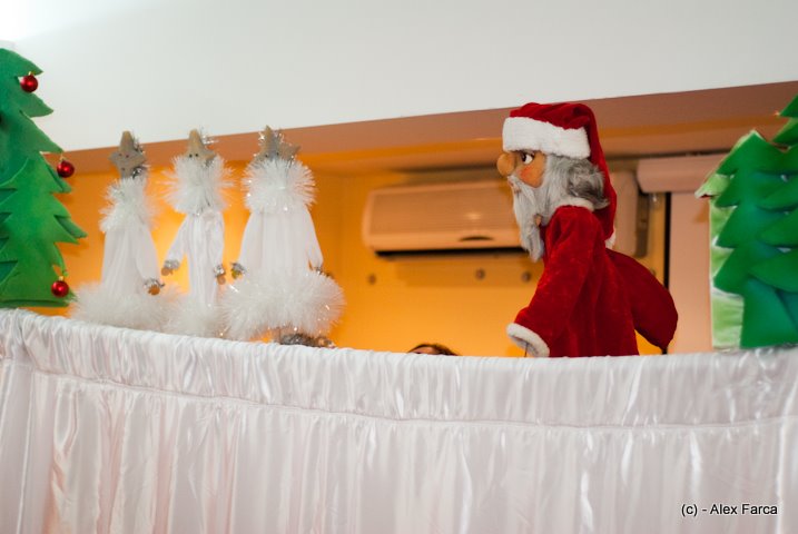 3 spiridoni contra unei reprezentaţii de jumătate de oră, o poveste amuzantă despre Moş Crăciun păcălit de vulpe, ba nu, de vrăjitoare. Ce am admirat cel mai mult a fost modul în care au interacţionat copiii cu marionetele, făcând ca spectacolul să devină interactiv.