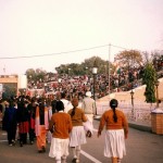 Şi prin mulţimea de gură cască, cum să nu mă duc şi eu, tot eram prin zonă – în decembrie 2003 prin Amritsar. Negociez la sânge cu un şofer de ricşă, până la urmă obţin un preţ extrem de bun (cred că şi şoferul avea chef să vadă ceremonia de la Wagah) şi am plecat la drum. Greşeală fatală – în decembrie, este frig rău în Punjab, plasticele de pe ricşă nu prea ajută la oprirea vântului rece, iar autocarele care ne depăşesc tuşind din greu gaze de motorină proastă nu sunt o experienţă prea plăcută… Dar ce contează, suntem în drum spre faimoasa, incredibila ceremonie de la Wagah. Alături de alte mii de indieni. 28 km sunt între Wagah şi Amritsar, dar cu ricşa îi faci în mai bine de o oră…