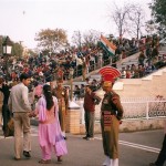 S-au instalat punctele de frontieră, grăniceri, vameşi, s-au ridicat steaguri. Şi după buna tradiţie militară britanică, în fiecare seară, la închiderea punctului de trecere (graniţa e deschisă doar în timpul zilei, noaptea nu se poate traversa dintr-o ţară în alta – cel puţin legal), avea loc ceremonialul de coborâre a drapelului… La început, veneau nişte copii din satele din jur să caşte gura. Apoi au început să apară şi nişte adulţi, ţărani de prin zonă. Seară de seară. Auzind de spectacol, în lipsa de orice altceva mai bun de făcut, or fi apărut şi ceva oficialităţi locale – vreun primar. Şi cum notabilităţile indiene sau pakistaneze sunt mult prea nobile să se amestece cu prostimea, probabil cineva a venit cu ideea să le dea un scaun. Cei de pe partea cealaltă a graniţei or fi adus fotolii. Ăştialalţi au pus vreo bancă, ăilalţi două banchete. Unii au început să aducă gură-cască şi mai de departe decât satul de lângă şi au adus mai multe banchete. Ceilalţi au început să organizeze tururi pentru şcoli. Într-un final, indienii au construit o tribună de stadion pe marginea drumului cu loje pentru VIP-uri. Pakistanezii au construit şi ei o tribună, dar în plus, au mai trântit şi o peluză. S-au construit WC-uri şi standuri de mâncare, se organizează tururi zilnice, vizitarea punctului de frontieră de la Wagah a devenit obligatoriu pentru orice şcolar eminent sau nu. Şi aşa seară de seară, o armată de autocare, ricşe, motociclete, biciclete, care cu boi se îndreaptă dinspre Amritsar şi Lahore spre punctul de frontieră.