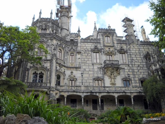Timpul nu ne permitea să vedem toate frumuseţile Sintrei. Totuşi am urcat, din nou, spre alt palat: Quinta da Regaleira. Ne-am întâlnit cu o fântână veche deteriorate de timp dar foarte picturală şi cu un zid de piatră grandios. Palatul şi grădinile încărcate de metafore, simboluri masonice şi ale cavalerilor templieri, sunt realizarea în plan concret de către arhitectul Manini, a visurilor mistico – magice ale proprietarului – Carvalho Monteiro. Stilul neo-manuelin caracterizează exteriorul din piatră gri. Interioarele enigmaticului şi surprinzătorului monument sunt înfrumuseţate de plafoane din lemn sculptate în stil baroc, cu basoreliefuri excepţionale. Chiar de la intrare ne-a întâmpinat un şemineu din marmoră şi un mozaic înfăţişând animale (începuse să-şi piardă culorile, ar fi trebuit cumva protejat).