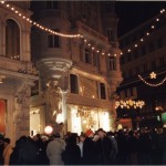 Am stat acolo până la 11:30 şi nu am uitat să ciocnim şi la 11:00, ora 12:00 în România. Când am ieşit ne întrebam încă unde am prefera să ne prindă anul nou. A fost să fie primăria, fără prea multe deliberări. Am luat o şampanie mică cu o inimioară verde ataşată şi două pahare de sticlă (pe care le mai avem şi acum) ca să avem ce ciocni. Ora se apopia şi se părea că cei de pe scenă nu aveau de gând să ia o pauză. Erau incredibil de mulţi oameni, cam ca în autobuzele din Bucureşti cu singura deosebire că suprafaţa acoperită era mult mai mare şi că nu mirosea urât! Se formaseră cozi mari la nişte ghişee care urmau să schimbe primii Euro din istorie. În cele din urmă a început numărătoarea inversă şi iată că am trecut şi în 2002. Aşteptările ne-au fost depăşite prin surpriză: ne aşteptam la focuri spectaculoase de artificii şi nu au fost decât focuri de amatori, dar nu ne aşteptam să dansăm împreună cu toată acea masă de oameni valsul de la miezul nopţii. A fost incredibil! După ce emoţia s-a risipit şi lumea a început să se mai împrăştie, ne-am luat un cârnat gen hot dog cu adevărat fierbinte, adică foarte picant, iar pe la 1 am pornit spre casă, odată cu foarte mulţi oameni care începeau să se retragă.