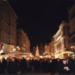 O mulţime de chioşcuri, fiecare cu ritmurile sale, te trăgeau de nas cu mirosurile de diverse bunătăţi, aproape ne părea rău că mâncasem. Am început totuşi cu nişte castane pentru că miroseau irezistibil şi am dat pe gât o tequilla ca să nu îngeţam. De la Stephan, luaţi arecum de val, am ajuns în piaţeta Freyung unde erau deja concerte şi oameni de diverse vârste cântau şi ţopăiau în mod contagios. Tot aici am întâlnit ceva mai deosebit: punch srilandez. Între pieţele unde erau instalate scene pentru concerte, mai erau amenajate un fel de ringuri sau mini discoteci unde lumea dansa nestingherită. Ne-am continuat traseul ajungând la primărie unde ne-am amestecat din nou în marea de oameni voioşi şi săltăreţi. De acolo ne-am mai întors la Stephan dar nu am zăbovit prea mult pentru că era mult prea gălăgie, mult prea multe pocnitori şi apăruseră destul de multe personaje cu feţe ciudate. După ce am savurat o clătită, ne-am dat seama că mai erau încă două ore şi ne era destul de frig aşa că am hotărât să ne găsim un acoperiş. Am intrat la întâmplare pe o străduţă unde am dat de un restaurant foarte interesant, amenajat într-un subsol împăţit în foarte multe încăperi, ca o pivniţă labirint. Nu era pretenţios dar se pare că avea un anumit tip de clientelă, alcătuit mai ales din persoane mai în vârstă, dovadă vie a faptului bătrâneţea nu te împiedică să te distrezi. Erau cu toţii simpatici şi frumos gătiţi, căntau la acordeon şi râdeau.