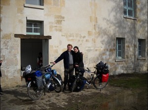 Marie şi Jean Marc s-au căsătorit şi s-au hotărât să îşi facă voiajul de nuntă nicăieri în altă parte decât … în jurul lumii. Au plecat din Paris pe 1 martie iar pe 27 aprilie i-am întâmpinat în Bucureşti. 2 luni pe bicicletă e mult sau puţin? Nu ştiu, însă ceea ce sunt sigură e că cei doi au încă nişte luni bune de drum în faţă, destinaţia lor principală fiind Japonia. După care, dacă vor mai găsi ceva prin buzunare şi prin sertarele cu motivaţie, curiozitate şi entuziasm, vor lua avionul către America. Să zicem aşa, estimativ… minim doi ani prin lume? Şi dacă nici asta nu vi se pare mult, încercaţi să vizalizaţi drumuri mai puţin prietenoase, pante abrupte la care efortul este maxim, câini sau alte posibile animale, ploi interminabile, prea frig sau prea cald, gaura care apare în cort atunci când te aştepţi mai puţin şi vă daţi seama că aş putea continua…