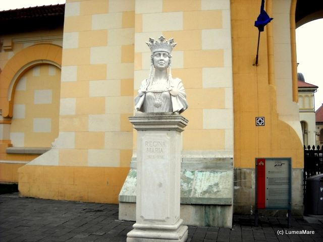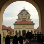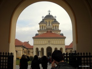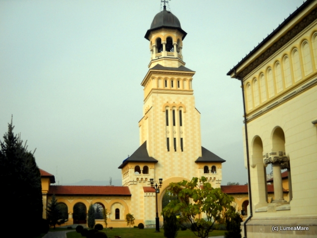 Inima oraşului, se ştie, bate la Catedrala Reîntregirii Neamului, aflată în Cetate. Colorată acum în alb şi galben, cu înalta ei clopotniţă şi galeriile împrejmuitoare, răspândea lumina alungând pâcla unei zile mohorâte. De o parte şi de alta a intrării portretele albe ale regelui Ferdinand şi reginei Maria, încoronaţi aici în 1922, amntesc cui a îndrăznit să uite că aici s-a făcut unirea Transilvaniei cu România şi că în cinstea ei s-a construit, între 1920 – 1921, aceasta catedrală. Portretele cuplului regal, picturile cu subiect religios şi istoric, fac mândria interiorului nu atât de mare pe cât ne-am fi aşteptat.