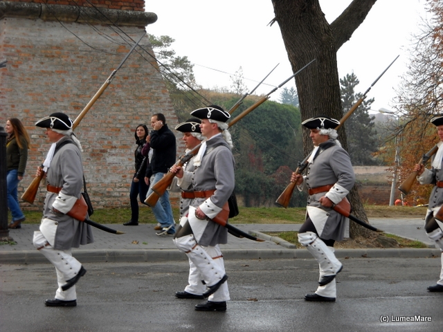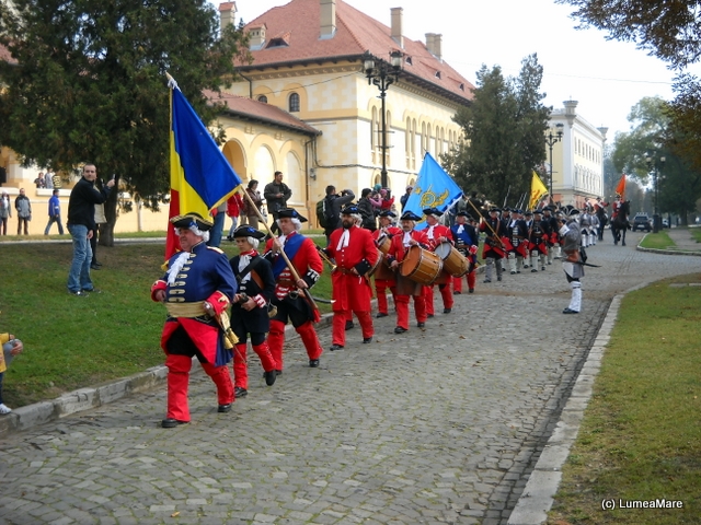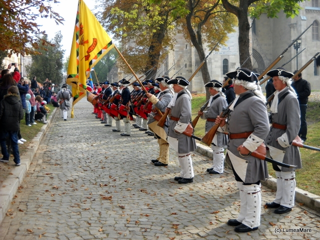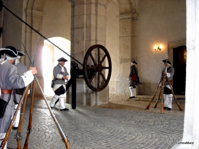 În acea zi Michel s-a aflat cumva în Austria şi în România în acelaşi timp, nu în peisaj cum îşi dorise ci într-o întâlnire cu istoria. Văzusem deja schimbarea gărzii la palatul regal din Rabat şi la palatul Buckingham. Nu ne-am aşteptat la acest frumos ceremonial colea, la doi paşi! Am aflat că el are loc de la 1 mai până la 1 octombrie, în fiecare sâmbătă la 11:30. Numai că eram la jumătatea lunii octombrie. Atunci? Veniseră la Alba Iulia 40 de ambasadori din toată lumea! Şi noi!
