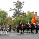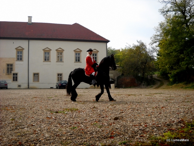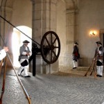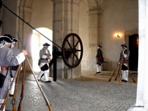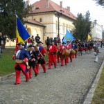Un răpăit de tobe şi sunete de alămuri ne-au chemat afară, unde ne-am trezit în plină poveste medievală – un convoi pedestru alcătuit din bărbaţi maturi, tineri şi un băieţel, îmbrăcaţi în costume de epocă şi purtând peruci argintii, însoţiţi de o fanfară şi toboşari, păşeau solemn. În urma lor o mini cavalerie venea pe mândri cai negri, unii înspumaţi. Era defilarea gărzii traseului celor Trei Fortificaţii, un adevărat apectacol.