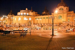 Hălăduim liber prin oraş, pe uscat şi pe apă (unde o voce ne spune lucruri interesante despre Budapesta), mâncăm la restaurantul “Gong” al unui domn fost boxer foarte volubil şi prietenos şi în final atingem atracţia serii, adică băile termale Szechenyi.