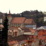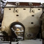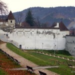 Coborâm din nou în cetate şi ne orientăm către dealul pe care urcă drumul spre Poiana Braşov, pentru a întâlni… alte sisteme de apărare. Aleea ”După ziduri” ne conduce de-a lungul celeilalte laturi fortificate şi spre Romuri, o zonă care adăposteşte două turnuri deja celebre. Turnul Negru (care acum pare cam alb, sau cel mult gri) este un turn micuţ, ridicat pe o mică coastă abruptă deasupra cetăţii şi datează din secolul XV. Numele i se trage de la la un trăsnet care l-a lovit şi l-a înnegrit. Când am ajuns şi noi pe acolo era închis dar am înţeles că se poate vizita. Ne-am mulţumit cu câteva clipe petrecute pe terasa acestuia, de unde am putut privi vechile clădiri din spatele zidurilor, a căror formă lasă impresia unor mici cetăţi bine închise. Am observat un spaţiu între zidul exterior şi primele case, spaţiu delimitat de alte ziduri şi de nişte turnuri mai mici. Aici erau cândva amenajate Ţarcul Măcelarilor şi Ţarcul Curelarilor. În spatele tuturor zidurilor existau aceste spaţii, ocupate de câte o breaslă, loc în care îşi desfăşurau activitatea. În dreapta vedem incinta Bastionului Fierarilor, transformat la începutul secolului XX în Arhivele Statului. În spatele turnului am văzut două găuri săpate în stâncă. Am înţeles că acestea ar fi fost vechile căi de acces către cetate. Dacă aveam la noi o lanternă…