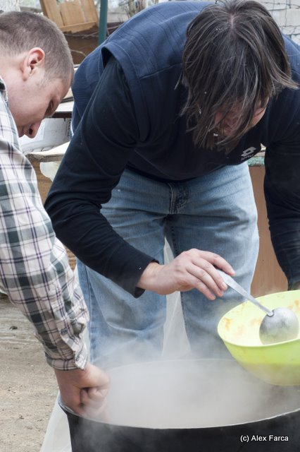 Am preparat şi gustat ciorbă rădăuţeană la ceaun (Alex e dator cu reţeta, va veni şi aceasta zilele următoare), tot felul de grătăreli delicioase cu gust tradiţional… arăbesc :-), miere adevărată de albine (nu am plecat fără să luăm trei kile şi pentru acasă!) dar şi ciorbă de peşte şi novac la grătar. Nu vă spun despre deseturi că nu vreau să vă omor, eu una nu cred că am mai mâncat atât de mult atâta dulce într-o singură zi!