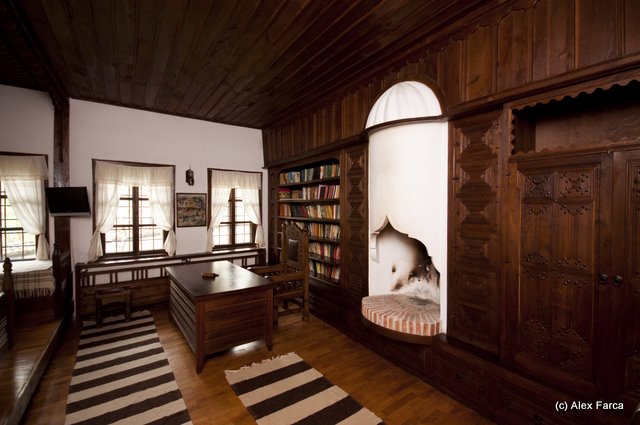 Într-una din plimbări, chiar a doua zi după sosire, am descoperit Casa Hadjihristov / Hanul Arbanashki – observaţi cum toate site-urile au şi varianta în română! O casă construită în 1646, un loc cu istorie dar care a aparţinut în timpurile mai recente comuniştilor, cu interioare impresionante. Când am dat cu ochii de mobilierul sculptat şi de atmosfera de conac a acelor camere aş fi decis pe loc să mă mut, dar am promis că altădată sigur vom dormi acolo. O doamnă foarte drăguţă ne-a deschis camerele, ne-a lăsat să facem poze peste tot (ok, i-am spus că avem un site de travel), ne-a povestit că au mai fost echipe de români de pe la nu ştiu ce televiziune să filmeze acolo şi alte detalii picante din vremea comunistă.