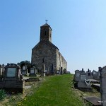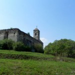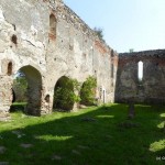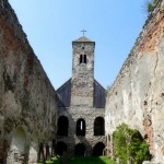 Vine şi domnul cu cheia mare de fier pe care ne-o înmânează, el grăbindu-se înapoi la slujbă. Ieşim din sat pe o portiţă, apoi urcăm puţin pe o uliţă între livezi pănă în dreptul curţii. Folosim cheia şi intrăm. Ne aflăm în faţa bisericii. Este simplă, nu foarte mare, construită din piatră. Pe alocuri se mai păstrează mici urme de tencuială sau de piatră cioplită. Turnul cu clopotniţa sunt încă în picioare. Totul este simetric şi în armonie cu natura care se îmbină cu ruinele. Se văd orificiile în care au fost ferestrele şi se înlănţuie câteva treceri boltite prin ziduri. În dreptul uneia este o placă de marmură sculptată cu coroniţa de flori de piatră a fetei care s-a sacrificat pentru iubirea pură.