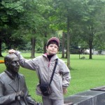 Pe drum admirăm o căprioară pe dealul din spatele pensiunilor, traversăm un parc, ne îndrăgostim de nori, ne jucăm cu statuile şi facem o partidă de sah. Nu spun cine pierde că mi-e ruşine.
