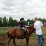 – Cât despre relaţia mea cu calul nu ştiu ce să vă spun deocamdată. Mă urc eu pe el dar îmi vine să mă dau jos destul de curând. Pe aici nu se practica ţinutul în coardă şi toată lumea are grijă de toată lumea. Mai lucrăm la asta, sper să se prindă ceva curaj şi de mine până pa urmă… De la prima intrare în grajd am testat duritatea şi forţa copitei de cal. Pe propriul genunchi. Not good, vă spun eu!