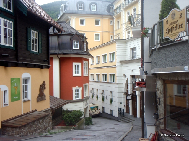 Încă o zi cu ploaie în valea Gastein! Nu pot decât să mă bucur că există atâtea piscine cu ape termală caldă în zonă, altfel nu ştiu cu ce ne-am umple timpul. Astăzi ne propunem să ieşim din Bad Hofgastein şi să vizităm Bag Gastein, unde se află şi Felsentherme şi telecabina care te duce la podul suspendat şi o minunata cascadă care curge printre clădirile staţiunii aşezată în trepte, pe munte.