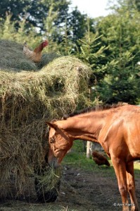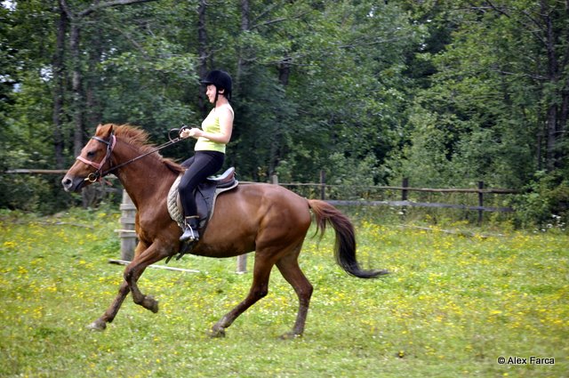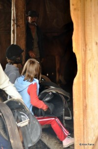 Despre orele de călărie nu vă spun pentru că am mai povestit în articolul anterior. Merită totuşi să vă atrag atenţia asupra unui aspect. Nimeni, nici mic nici mare, nu este ţinut în coardă până învaţă. „Aşa nu se învaţă!”, m-a lămurit hotărât Zoli, în timp ce mie, orăşeanul fricos, îmi venea să dau bir cu fugiţii. Da, caii simt că nu au călăreţi pricepuţi în spate şi se fandosesc sau se transformă în catâri care fac ce vor. Hoini s-a gândit chiar că i-ar prinde bine o tăvăleală în timp ce Petra era încă în şa (vezi mai jos „paşii cum”).