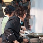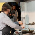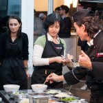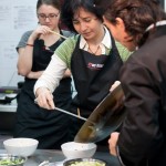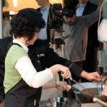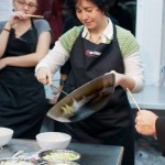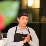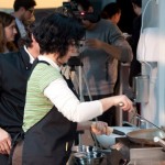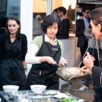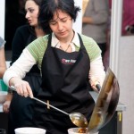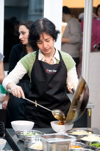 P: Maestrul Tushin ne-a făcut o scurtă introducere, după care, cu încetinitorul (se pare) ne-a prezentat ingredientele şi etapele principale ale realizării preparatului. Nu am cronometrat, dar probabil în 3-4 minute gata preparatul, care la viteză normală ar avea stop time la 2 minute. Apoi ne-a invitat şi pe noi la treabă.