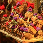 Încercând să scăpăm de şocul iniţial, ne-am îndreptat către piaţa de Crăciun din apropiere. Unde, desigur, ne-am întâlnit cu rudele omuleţului mai sus menţionat, dispuse pe rafturi şi aşteptându-şi cuminţi atât cumpărătorii, cât şi turiştii gură-cască, şi ei la fel de uimiţi ca şi noi. Pentru că problema părea destul de serioasă (nu de alta, dar i-am văzut şi pe prinţesa Kate, pe Angela Merkel şi chiar pe Papă în postura asta!) am zis să întrebăm şi noi un localnic. Eh, aici a fost un pic greu pentru ca la întrebarea noastră „Do you speak English?” ni se răspundea neaoş cu „Si, un poco”. Până la urmă am găsit pe cineva care vorbea o engleză fluentă şi care ne-a spus că figurina respectivă, numită Caganer este specifică regiunii Cataloniei şi înseamnă belşug şi prosperitate, dar şi faptul că oamenii sunt egali, indiferent de rasă sau statut social.