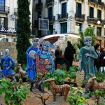 La primii paşi prin Barcelona am aruncat întâi fularul, apoi am mai lepădat, ca un fel de Babă Dochie cuprinsă de fiorul turistic, şi puloverul. Să înceapă Adventul în tricou! Având călătoria drept unic scop, străzile şi cotloanele cele mai ascunse ale oraşului ni s-au deschis miraculos în faţă, apărând parcă de nicăieri şi ademenindu-ne cu zarva lor. Imediat am întâlnit prima minunăţie şi, concomitent, am avut parte de prima surpriză: o iesle superbă, cu personaje din ceramică, aproximativ de înălţimea unui copil de vreo şase ani. Magii, o scenă pastorală pe malul unei ape, Maria şi Iosif cu pruncul într-un decor exotic. Ce frumos! Ceeeee…?! După colţ, sub nişte măslini mici, era el. Cu o expresie puţin surprinsă pe chip (nu mai ceva decât a noastră, vă garantez, însă!), cu pantalonii în vine şi cu un mic colăcel maro sub poponeţ, personajul ăsta ne-a făcut să scoatem nişte strigăte de uimire şi să ne întrebăm dacă ar fi mai normal, totuşi, să îl ignoram.