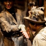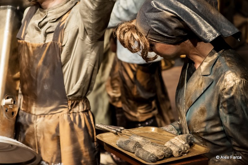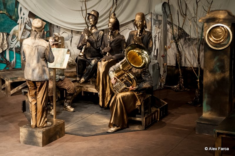 Maestrul așteaptă începerea spectacolului, statuile vivante ne întâmpină în grădina teatrului, iar Valentin Mihalache este actorul-gazdă care ne urează bun venit la intrarea în teatru.