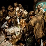 Așa începe premiera zile de vineri, 11 octombrie 2013. Ne găsim în parcul Cișmigiu al anilor 1854, anul inaugurării parcului de către Barbu Știrbei. Fosta baltă mocirloasă a lui Dura Neguțătorul devine parcul de referință al Bucureștilor. Pensionarii adunați în jurul eternei table de șah rezistă trecerii timpului, episoade din trecut și din prezent se succed înlănțuite de lumină, gesturi, costume. Personajele se schimbă precum vremurile, fără cuvinte. Copiii din sală zâmbesc și apoi râd aproape în gura mare la scenele din piesă. Îmi aduc aminte că înainte de spectacol Petra (LumeaMică) mă întreabă dacă spectacolul este și pentru copii. Cred că i-am răspuns pe loc că da, și nu am greșit, la fel cum sunt aproape toate spectacolele teatrului Masca.